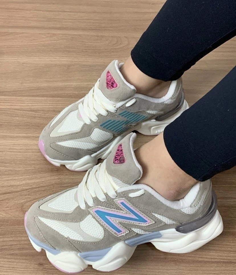 tenis casual 9060 Bege com Azul/Rosa – Lançamento Exclusivo